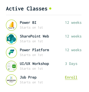 Choose from industry-relevant training in Microsoft 365, Power BI, UI/UX, Tech Consulting, and more